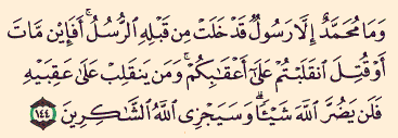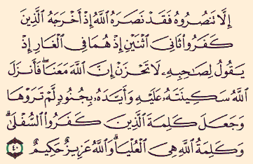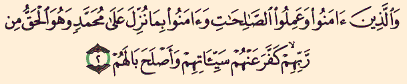 Muhammad est le Messager d'Allah. Et ceux qui sont avec lui sont durs envers les mécréants, miséricordieux entre eux. Tu les vois inclinés, prosternés, recherchant d'Allah grâce et agrément. Leurs visages sont marqués par la trace laissée par la prosternation. Telle est leur image dans la Thora. Et l'image que l'on donne d'eux dans l'Evangile est celle d'une semence qui sort sa pousse, puis se raffermit, s'épaissit, et ensuite se dresse sur sa tige, à l'émerveillement des semeurs. [Allah] par eux [les croyants] remplit de dépit les mécréants. Allah promet à ceux d'entre eux qui croient et font de bonnes œuvres, un pardon et une énorme récompense.